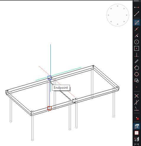 De snap op objecten werkt in principe in 3D, als een eindpunt van een lijn of vertex boven de grond ligt wordt dat punt gekozen. Echter als OSNAPZ op 1 staat, wordt het punt gekozen geprojecteerd op het XY-vlak van het huidige UCS op de huidige hoogte.