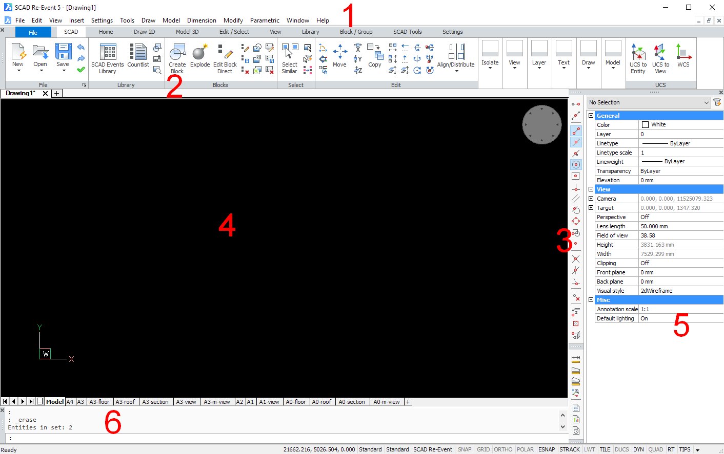 • In het onderste veld kunnen commando’s ingetikt worden en tevens verschijnen hier de vragen,opties en andere informatie met betrekking tot het gestarte commando. Als de commando bar niet zichtbaar is (gesloten) dan komt deze informatie in de Status Bar.