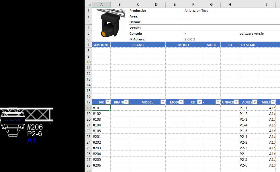 Wanneer Excel niet geinstalleerd is wordt het Excelbestand aangemaakt in de map van de tekening.