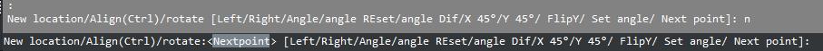 C / M (kopiëren / verplaatsen): Na het invoeren van een trefwoord, zal het drukken op de spatiebalk of Enter dat laatste commando herhalen. Wanneer een hoek werd ingevoerd, hetzij via Angle of Difference, wordt de eerder ingevoerde hoek toegevoegd aan de huidige rotatie.